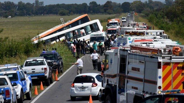 En tanto, 34 resultaron heridas, dos de ellas de gravedad, al chocar de frente dos micros de la misma empresa en el kilómetro 779 de la ruta nacional 33, a la altura de la localidad santafesina de Zavalla, en el departamento de Rosario.