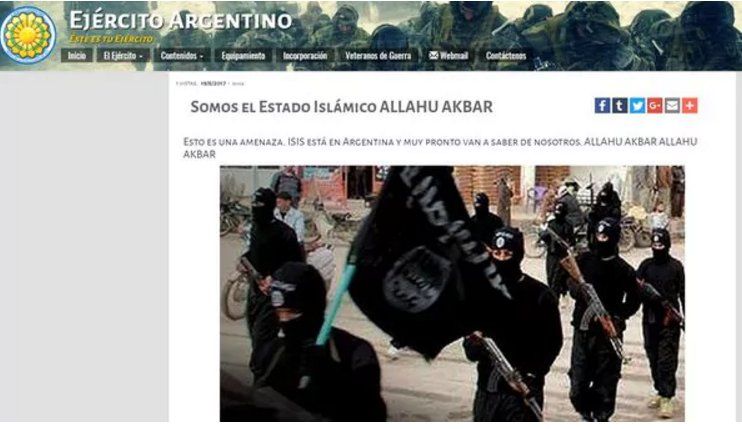 El sitio oficial del Ejército Argentino fue hackeado este lunes con una foto y supuestas amenazas de ISIS.