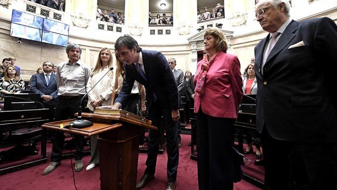 Los 23 senadores electos en los comicios legislativos del 22 de octubre, entre ellos los ex presidentes Cristina Fernández de Kirchner, Carlos Menem y Adolfo Rodríguez Saá, juraron hoy en una sesión especial de la Cámara alta.