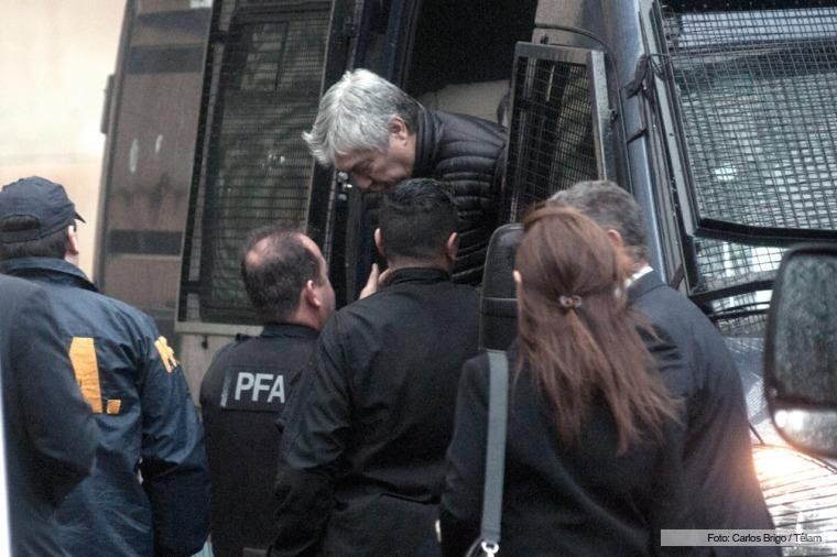 El móvil de la Policía Federal que trasladó a los detenidos Lázaro Báez y Daniel Pérez Gadín esta mañana desde la Superintendencia de Investigaciones Federales, en Villa Lugano, llegó a los tribunales federales, donde se llevará a cabo la indagatoria ante el juez Sebastián Casanello.