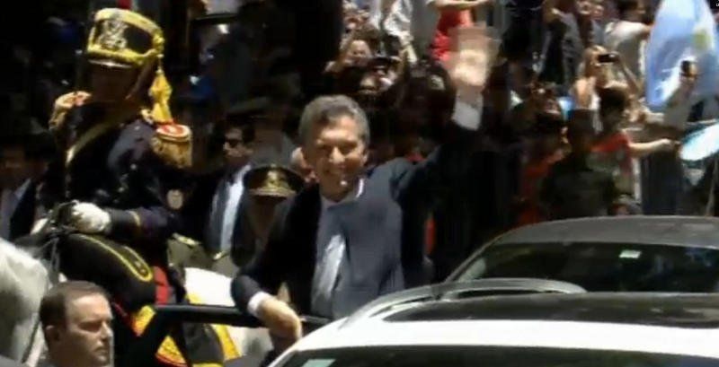 Después de jurar en el Congreso y de convertirse oficialmente en presidente de la Nación, Mauricio Macri abandonó el recinto y tomó por Avenida de Mayo rumbo a Casa Rosada. Allí recibirá el bastón y la banda, atributos presidenciales.