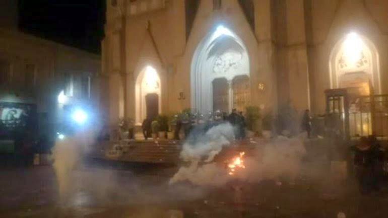 Los incidentes se produjeron anoche frente a la Catedral de Mar del Plata, en el centro de la ciudad, cuando un sector que participaba en la marcha por el Encuentro Nacional de Mujeres de Mar del Plata decidió hacer un "escrache" al templo.