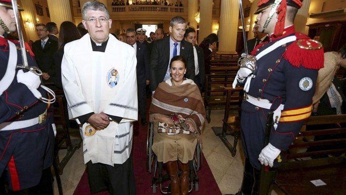 En el espacio donde nació la Patria el 9 de Julio de 1816, el cual se mantiene intacto como en el siglo XVIII, la titular del Senado acompañó hasta el pie de la mesa de la jura, a un guardia con uniforme histórico que depositó una ofrenda floral en nombre del presidente Mauricio Macri.