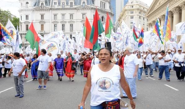 Miles de integrantes de la Tupac Amaru, encabezados por Milagro Sala, participaron en Plaza de Mayo del acto por la Restauración de la Democracia y los Derechos Humanos.