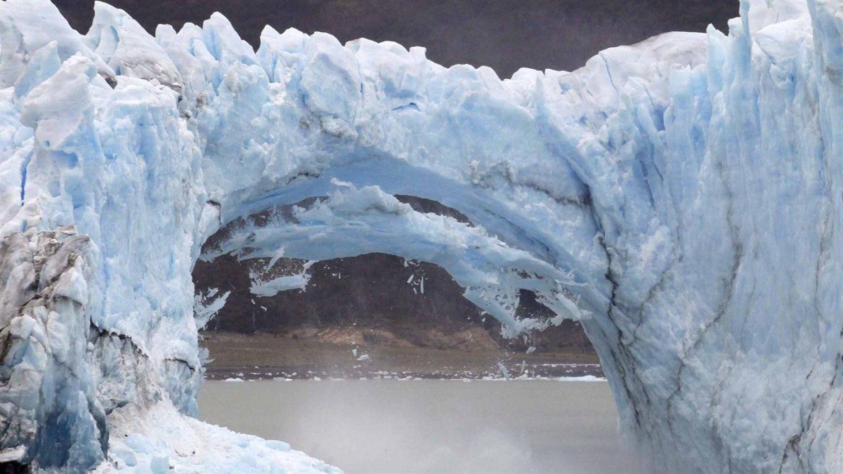 Cuando el hielo se despega en algún punto del apoyo rocoso comienza a filtrar el agua y se inicia el proceso de ruptura, que es irreversible.