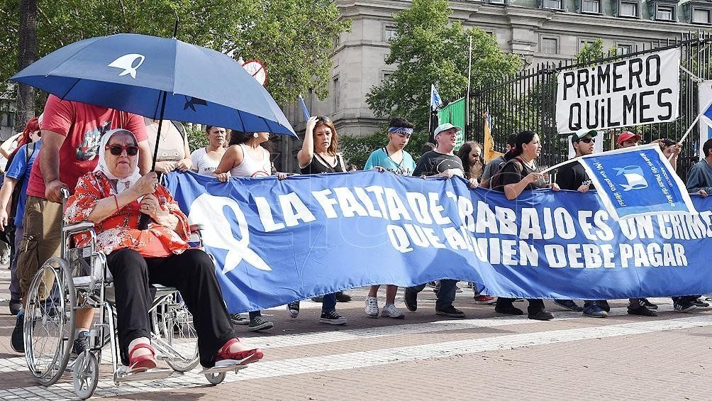 Acompañadas por militantes kirchneristas, la titular de Madres de Plaza de Mayo señaló: "Las Madres siempre vamos a estar acompañando a los trabajadores, vamos a salir a la calle, haremos otros 17 de octubre o un tsunami", porque "nunca vamos a dejar de luchar".