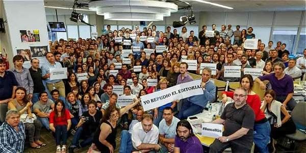 La publicación también fue rechazada por los propios trabajadores del diario, quienes manifestaron en un comunicado su disidencia con este contenido que “en nada los representa”. Los trabajadores pidieron además por la continuidad de los juicios por delitos de lesa humanidad.