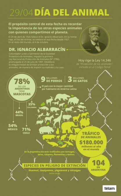 Comenzó a celebrarse en Argentina desde 1927 debido al fallecimiento, en 1926, del doctor Ignacio Lucas Albarracín, presidente de la Sociedad Protectora de Animales. Mirá la infografía.
