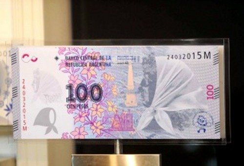 La presidenta presentó el boceto de un nuevo billete de 100 pesos de la Memoria, la Verdad y la Justicia, tal como se anunció en la ceremonia, que está dedicado a las Madres y Abuelas de Plaza de Mayo.
