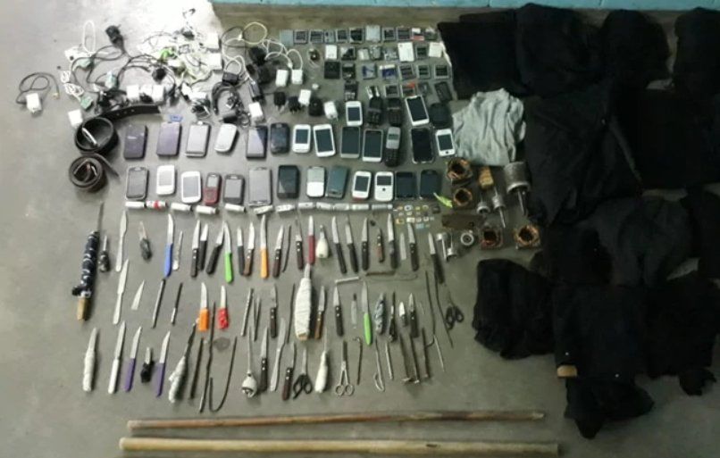 El SPB, por su parte, organiza requisas sorpresivas con un centenar de agentes por penal y perros entrenados en base a datos de inteligencia, con 40 realizadas entre 2018 y este año. Buscan más que teléfonos. El año pasado, se encontraron en la Provincia 12.697 facas y cuchillos, 1.163 litros de pajarito -la bebida alcohólica hecha con restos de fruta fermentados que hace en cárceles-, 7.583 pastillas, dos mil chips de teléfono y mil cargadores.