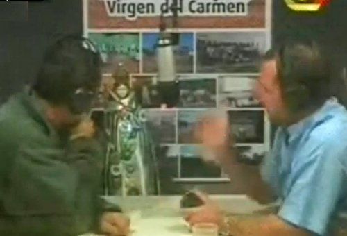 El papa dio una entrevista a las 12.30, por Radio Virgen del Carmen FM 99.9, a dos sacerdotes, Ignacio y Joaquín, a los que conoce desde jóvenes. El diálogo fue informal, como lo hacen amigos cuando se encuentran, desprovisto de todo formalismo, con el clásico tuteo argentino y risas de por medio.