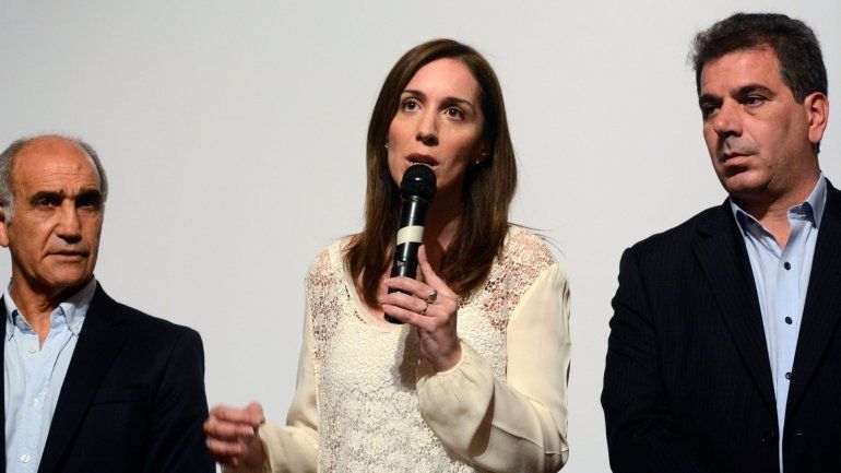 Además, indicó que denunciarán ante la Justicia a todos los involucrados. "Vamos a llevar adelante denuncias penales, no sólo sumarios administrativos". Vidal, junto al vicegobernador Salvador y el ministro Ritondo.