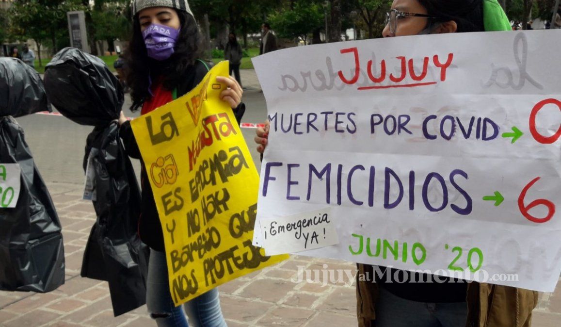 Pese a que la pandemia impone ciertas restricciones en cuanto a las aglomeraciones, organizaciones de mujeres de Jujuy se convocaron en Plaza Belgrano para hacer permanencia en la explanada de Casa de Gobierno y hacer sentir su reclamo. Particularmente por el aumento de las denuncias por violencia de género durante la cuarentena y por los femicidios ocurridos en lo que va de 2020.