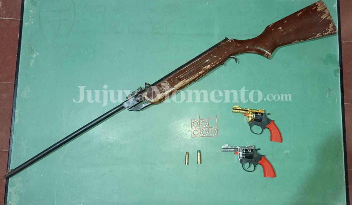 Por orden de la justicia, se llevó a cabo un allanamiento en una vivienda ubicada en en el barrio Santa Rita, lugar donde reside el menor involucrado. El resultado del registro domiciliario fue contundente: los efectivos lograron el secuestro preventivo de una carabina —arma de fuego con poder de fuego real— además de dos réplicas de juguete.