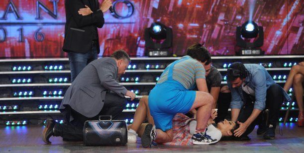 Junto al Bicho Gómez, la bailarina debió realizar la coreografía una vez más y durante el duelo sufrió una dolorosa lesión en la rodilla.