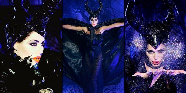 La conductora posó con el look de Angelina Jolie en el filme que recrea la historia de "La bella durmiente" desde el protagónico de la villana del cuento.