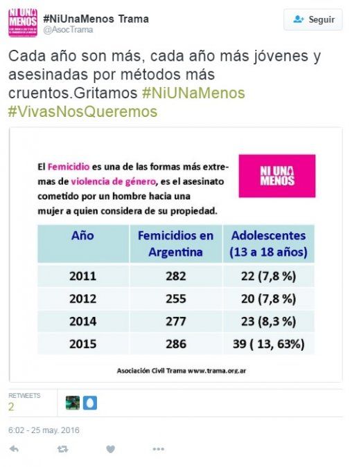 Tuitazo y convocatoria por #NiUnaMenos