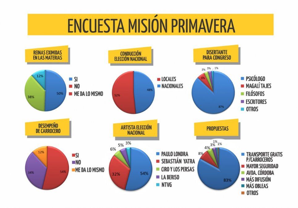 6- ¿Qué propuesta le gustaría aportar para la presente edición de la Fiesta Nacional de los Estudiantes? Un gran porcentaje sugirió la tramitación de transporte gratis para los carroceros, mayor seguridad, más obleas, volver los desfiles a la Avda. Córdoba, más difusión, entre otros.