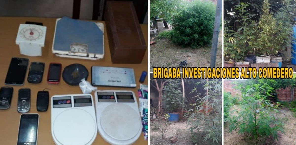 Este último jueves cerca de las 7:00 se llevó adelante el operativo de la Brigada de Alto Comedero. Fueron tres viviendas allanamientos, se pudo observar en uno de los domicilios un total de nueve plantas de sustancia vegetal y cuatro balanzas entre otros elementos, aparentemente destinadas a la comercialización de estupefacientes.