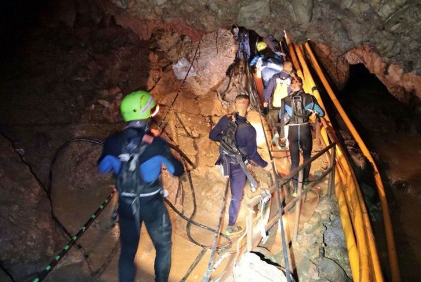 El grupo pasó nueve días sin dar señales de vida ni ingerir alimentos hasta que el lunes pasado, dos buzos británicos especialistas en rescate en cuevas, que fueron al país para trabajar codo a codo con los socorristas tailandeses, los encontraron.