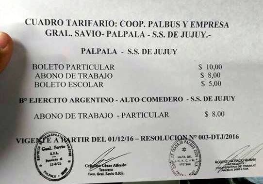 El costo del pasaje particular para el recorrido Palpalá - San Salvador de Jujuy pasará de $7,5 a $10 en la unidad. En las oficinas de las empresas saldrá $8.
