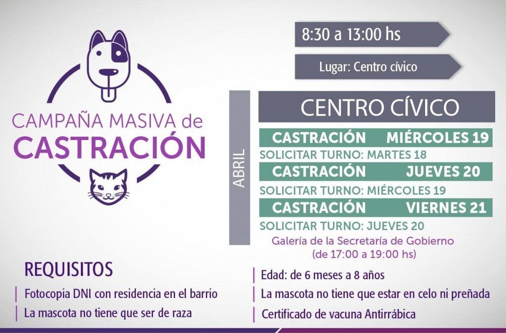 Los interesados en castrar a su mascotas tienen lo que resta de esta semana para dirigirse al centro Civico palpaleño para sacar turno el día anterior. Es decir el miércoles para la castración el jueves, y el jueves para el viernes 21 de abril.