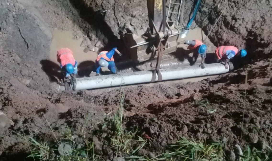 Señala que aproximadamente a las 6 de la mañana, luego de los intensos trabajos operativos, reparó el acueducto ubicado en la colectora de la Ruta 66 que provee a la cisterna Savio del líquido elemento, con el objetivo de tener un mayor caudal de agua para distribuir en las redes de los sectores afectados.
