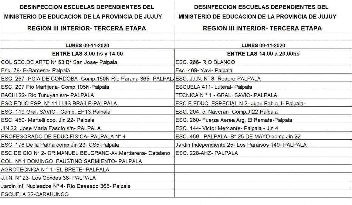 En el caso de la Escuela N°411 "Mayor Enrique Carlos Lutteral" los chicos concurrieron por la mañana, mientras que la desinfección se iba a efectuar en la tarde.