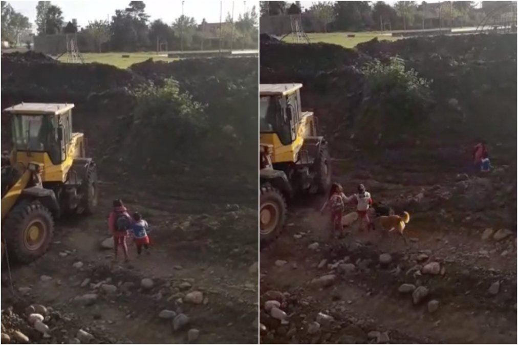 En el lugar además hay maquinas y obreros trabajando. Los chicos eligen pasar por el terraplén para evitar tener que realizar un trayecto más largo, aunque esto los exponga a peligros.