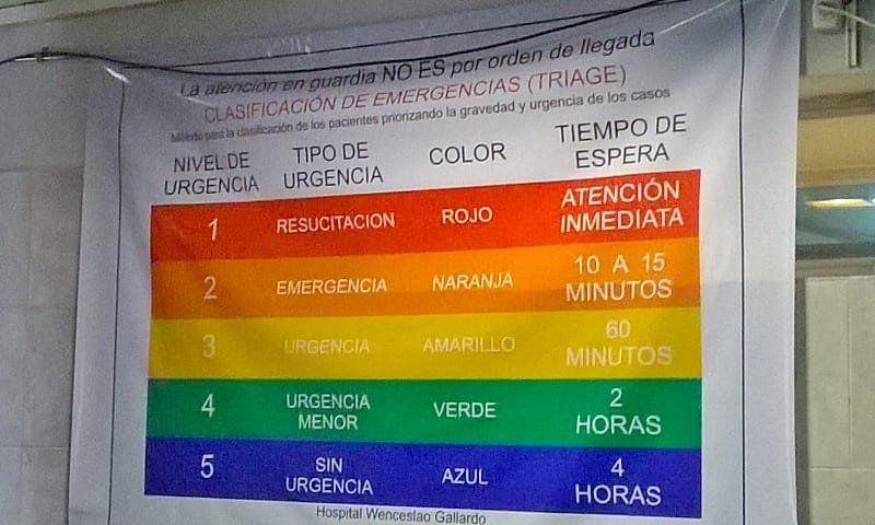 El sistema propone 5 niveles de urgencia identificados a través de distintos colores: