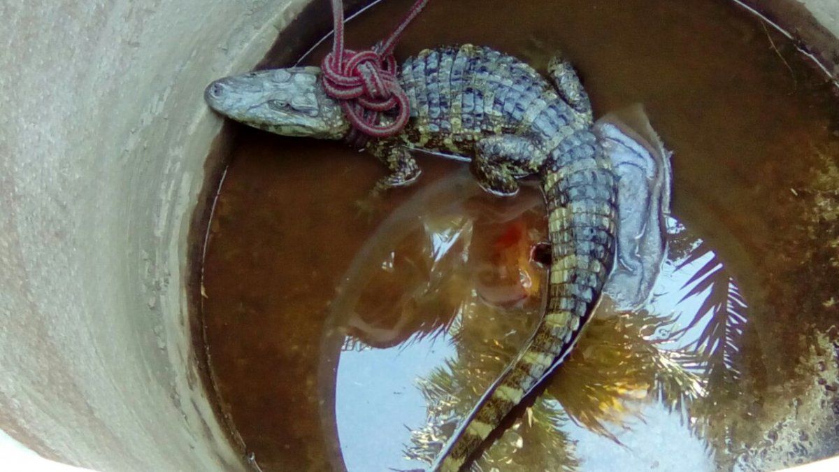 Al llegar al lugar los bomberos encontraron un caimán de unos 80 cm aproximadamente en buen estado, lo trasladaron al cuartel y dieron parte a personal de rescate de Fauna Silvestre Jujuy para que se encarguen del reptil.