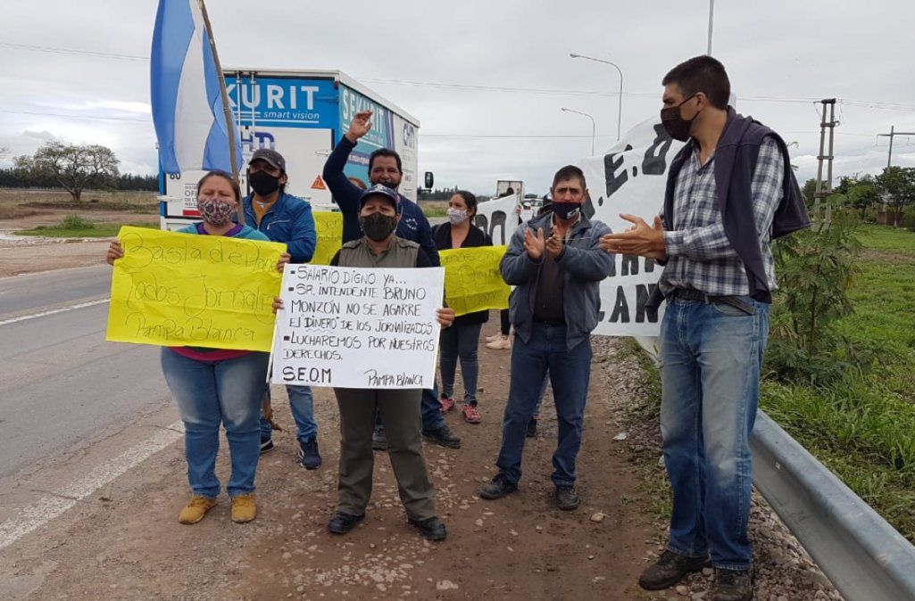 Crítica situación atraviesan trabajadores precarizados municipales de Pampa Blanca que fueron despedidos y a quienes les pagan $2500 si son de un plan y $5000 si son jornalizados. Piden que el Gobernador termine con la precarización laboral y adelantaron que los reclamos van a seguir, este jueves manifestaron en la ruta.