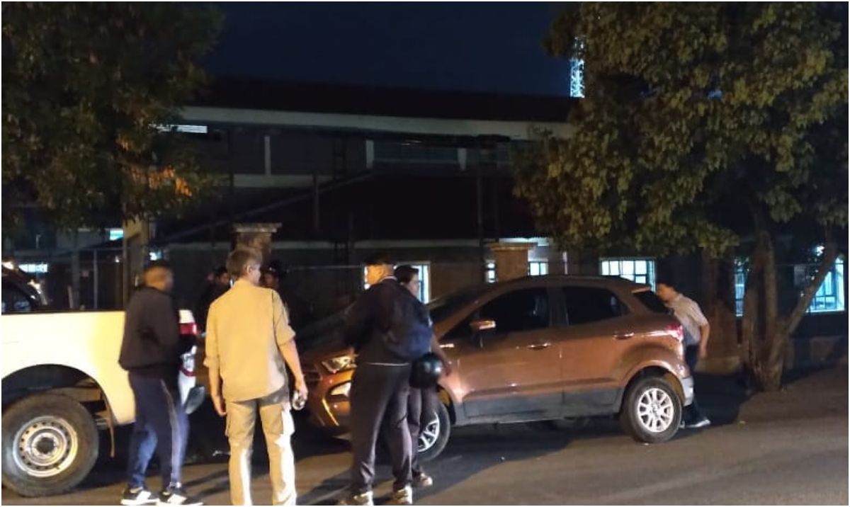 Ante la premura del caso, los efectivos realizaron un rastrillaje por la zona, logrando localizar a los inculpados sobre calle Cerro Aguilar, quienes al ser retenidos se tornaron agresivos.
