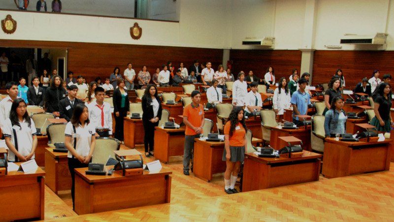 La ceremonia inaugural del Parlamento juvenil estuvo presidida por el vicepresidente primero de la cámara, a cargo de la presidencia, Carlos Amaya, la Ministra de Educación Isolda Calsina y el presidente de la Comisión de Educación, Néstor Sanabia.