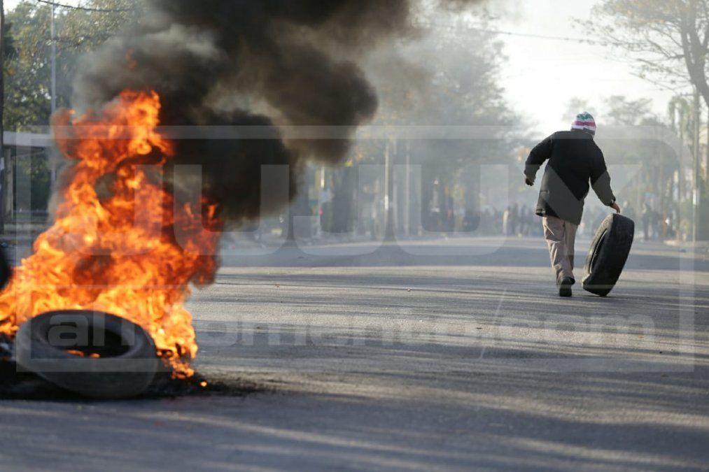La jornada del lunes comenzó con varios cortes de calles en diferentes puntos estratégicos de acceso a la ciudad, uno de ellos el que se ubicó en la intersección de calle Pueyrredón encabezado por Seom.