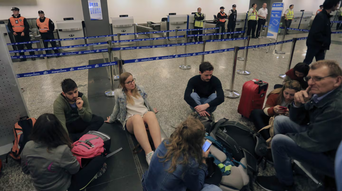 Desde temprano, la terminal porteña ya mostraba un clima enrarecido. Pasillos repletos, pasajeros varados en busca de enchufes para cargar el celular y discusiones con las aerolíneas marcaron el inicio de la protesta.