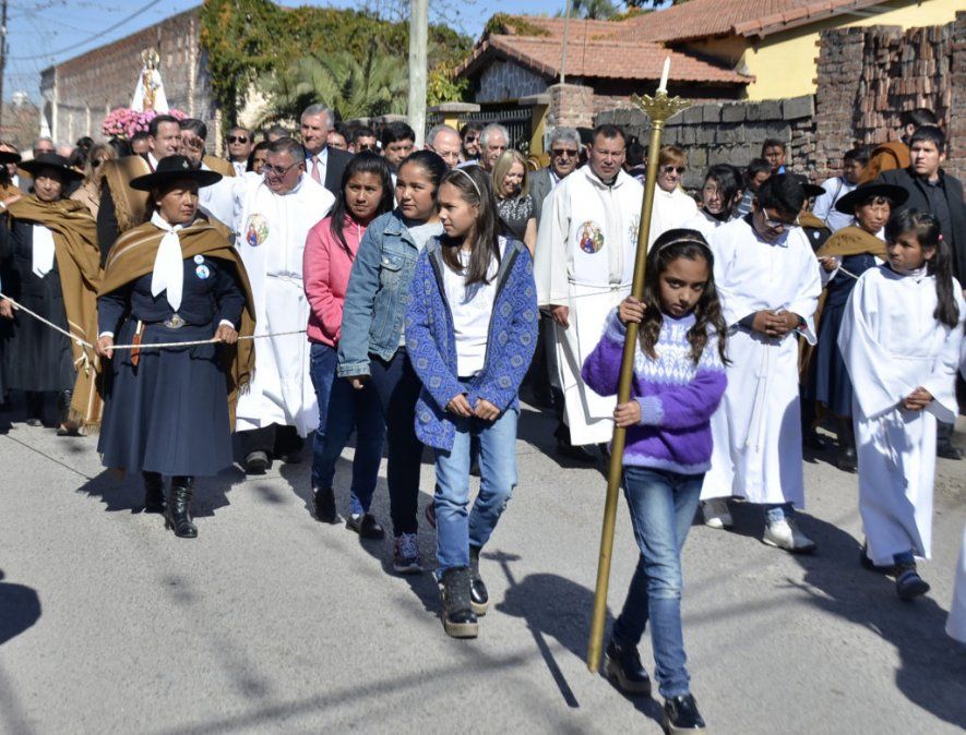 Posteriormente, y con gran concurrencia se desarrolló la ceremonia religiosa que estuvo presidida por el cura párroco, Germán Maccagno. Finalizada la misa, dio inicio a la procesión por calles aledañas a la iglesia, tras lo cual comenzó el desfile cívico – gaucho.