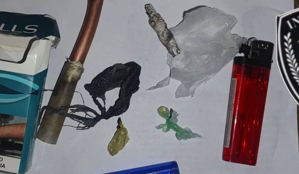 Durante la requisa, los uniformados encontraron un cuchillo tipo sierrita, que el joven llevaba oculto entre sus prendas, además de elementos vinculados al consumo de drogas, como una pipa metálica y envoltorios con una sustancia amarillenta sospechosa.