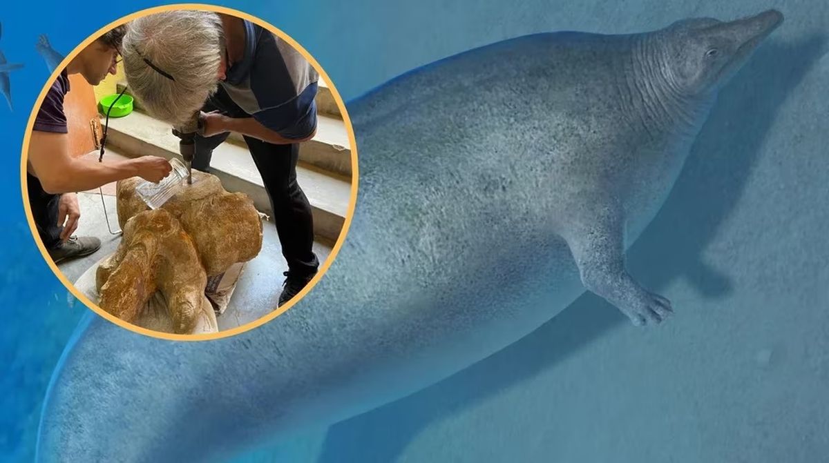 “A diferencia de otros vertebrados cuyos huesos se componen de tejido esponjoso y cortical, nuestro animal solo tenía hueso compacto, extremadamente denso. Esto se debe a un proceso denominado paquiosteoesclerosis presente en animales acuáticos, pero este era un caso extremo”, agregó.
