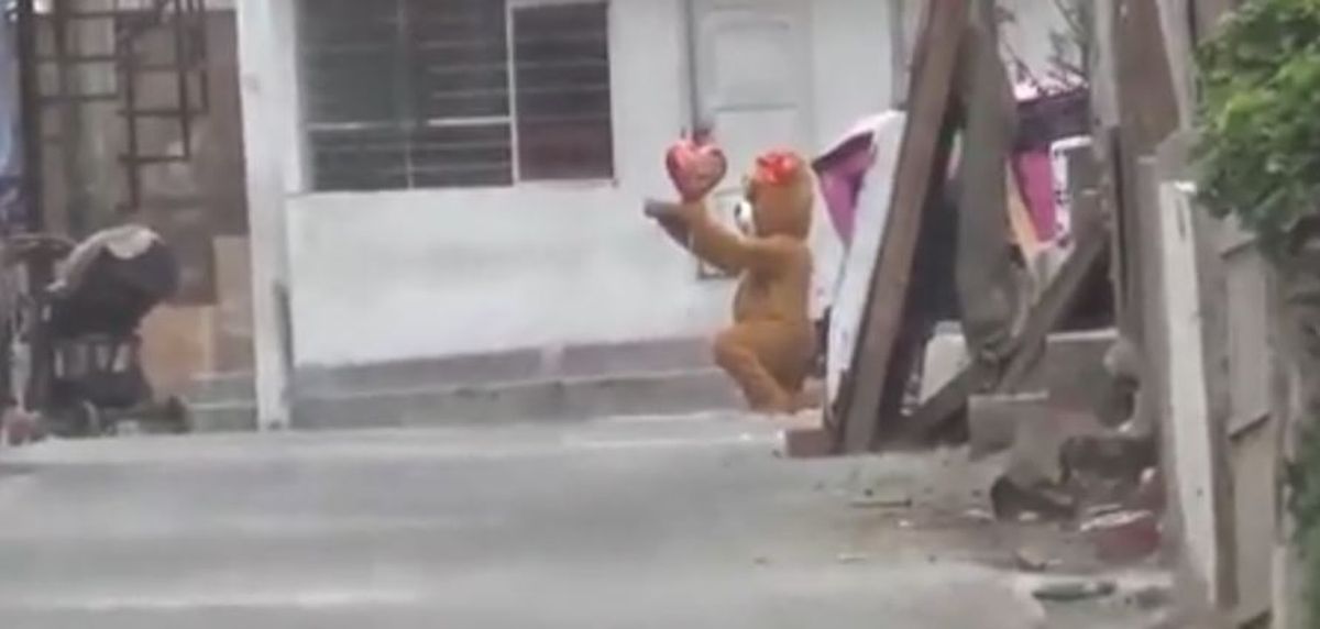 En las postales se observa que el agente apareció al frente de la casa de la femenina con un regalo aparentemente romántico y esperó a que salga de su escondite. "El oso de peluche" esperó pacientemente hasta que la mujer salió de su escondite en el cual se procedió a la detención. Además de la mujer, otra persona fue arrestada en el incidente.