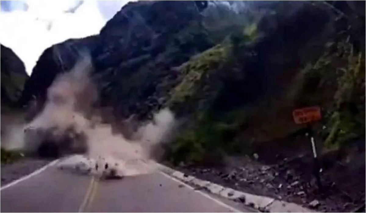 Según el hallazgo del video viral, una gran cantidad de enormes piedras cae de pronto sobre una serie de vehículos que atravesaban la montaña, aparentemente, de Perú, en Sudamérica.
