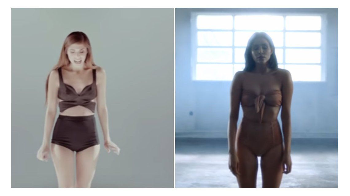 Algo es cierto: ambos videos tienen una escenografía despojada y en varios planos generales ambas aparecen cantando a solas, mezclando planos cortos o detalles de su rostro y partes del cuerpo.