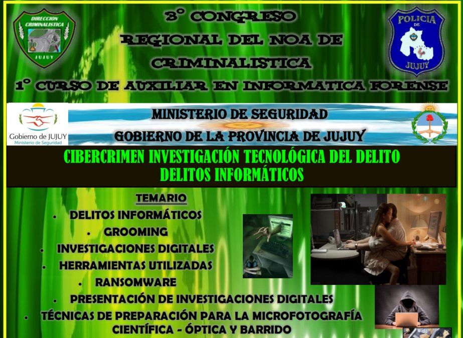 Los días 26, 27 y 28 de octubre se realizará el "3° Congreso Regional del NOA de Criminalística" y el "1° Curso Auxiliar de Informática Forense". En Santibañez 1372 de 17 a 21.