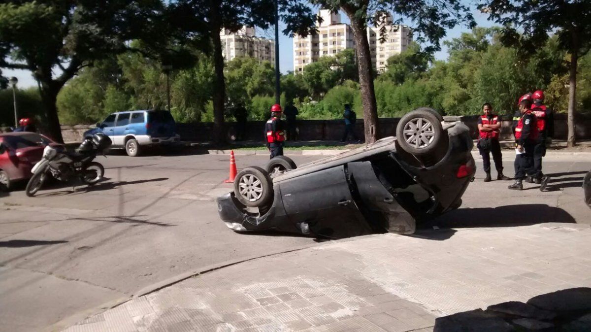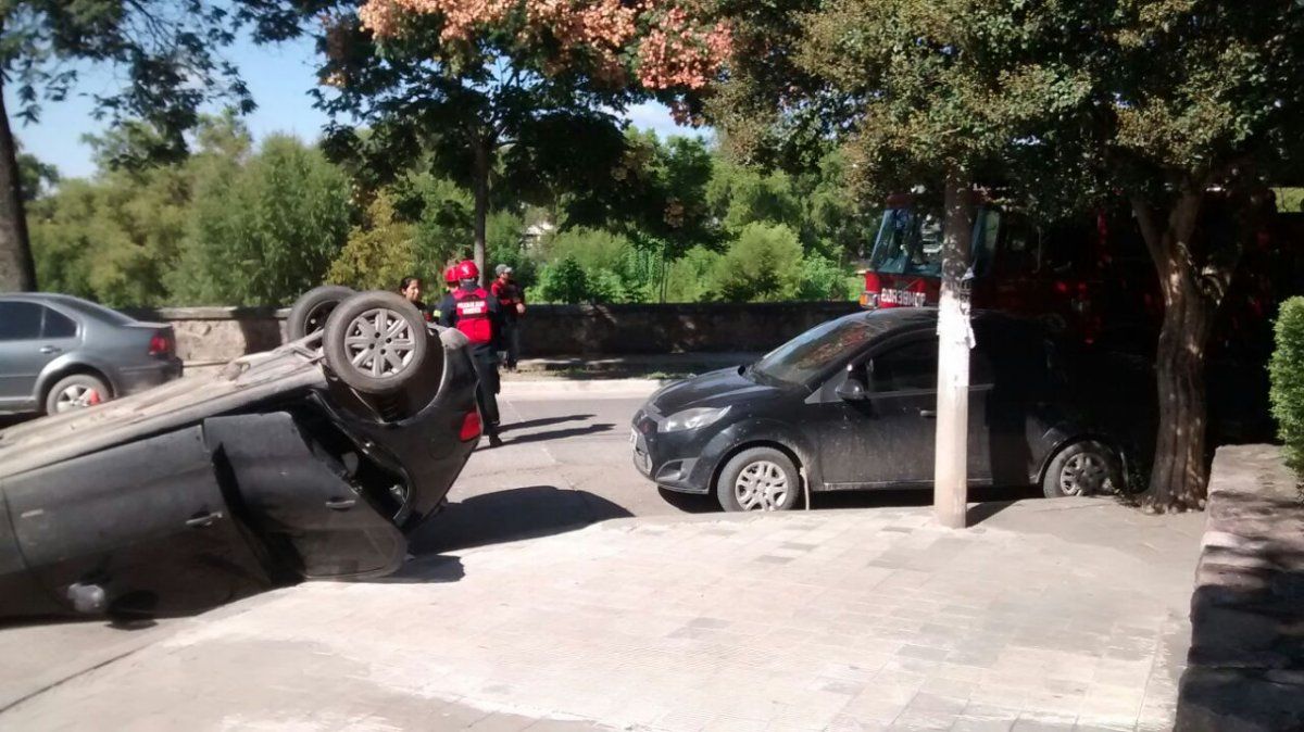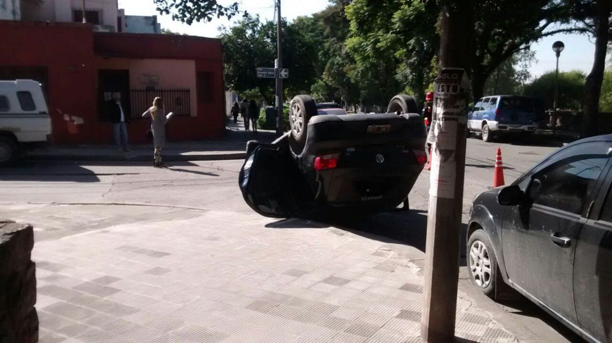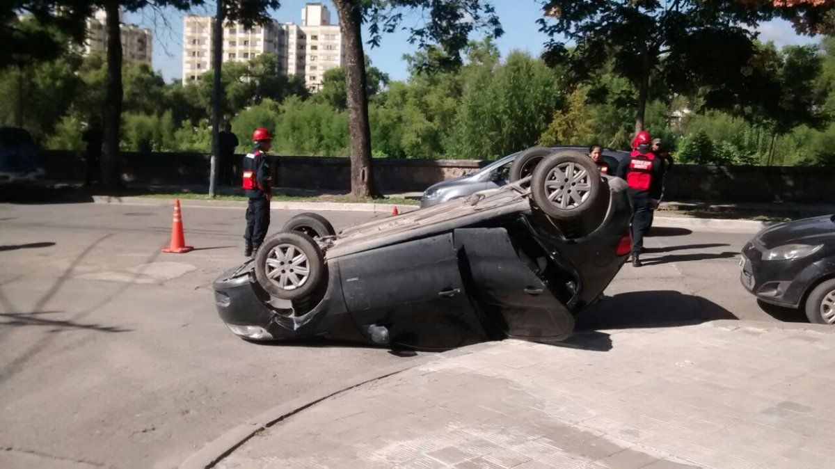 Un automóvil volcó en la avenida 19 de abril esquina Ernesto Claros.