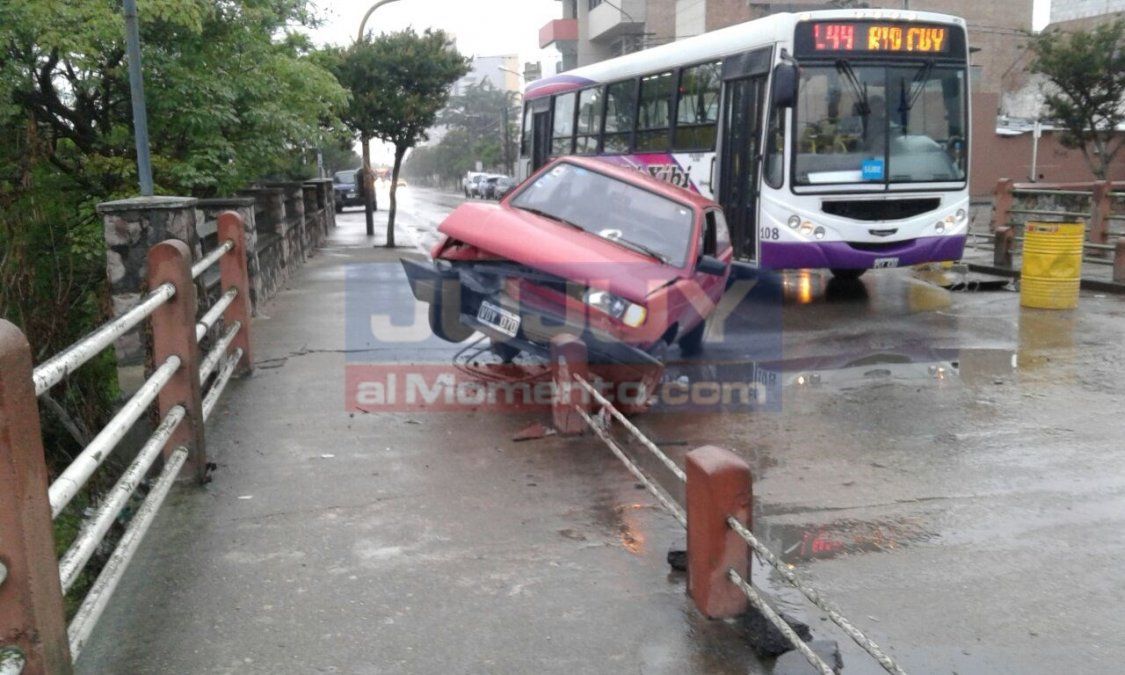 Un automovil VW Gol color rojo aparentemente perdió el control y chocó contra la valla de protección del puente que se encuentra sobre el ingreso al puente Senador Pérez en la Av. Fascio.