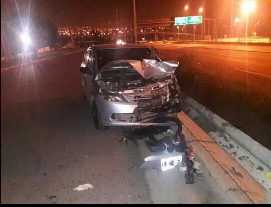 Una motocicleta en la que viajaban tres personas sin casco fue embestida por un automóvil en el Acceso Sur. El conductor de la moto falleció y sus dos acompañantes se encuentran internadas en grave estado.
