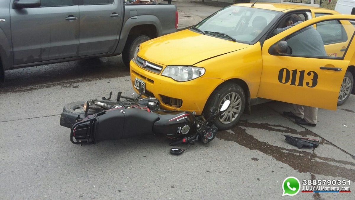 Una moto, en circunstancias que aun tratan de establecerse, quedó debajo de un taxi amarillo. Los tripulantes del motovehículo sufrieron heridas de consideración por lo que debieron ser trasladados al hospital.