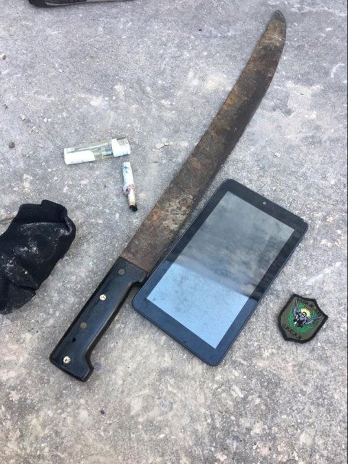 Además se secuestró un machete y en la requisa se extrajo entre sus prendas un tubo de metal, utilizados para el consumo de sustancias tóxicas.