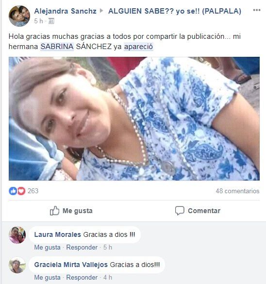 Apareció Sabrina Elizabeth Sánchez