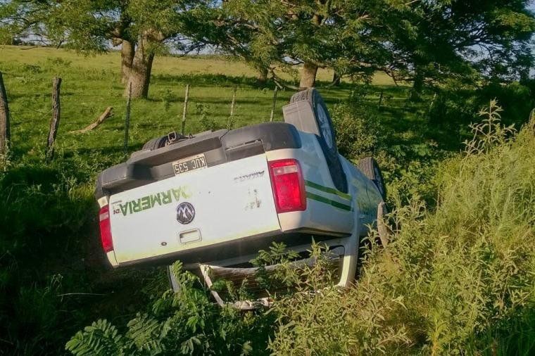 mala maniobra, volcaron la camioneta y continuaron la fuga a pie a través de